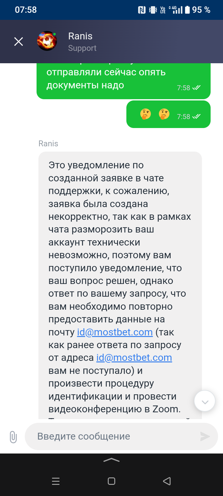 Мостбет хрень полная сперва время тянули по итогу акк заблокировали без возможности разблокировать есть скрины как они время тянули и я им скидывал не однократно документы по итогу -15к не советую 👎👎 этот казино ещё про какие то ставки говорят в которых я не шарю вообще и на почту писал игнорят самое худшее казино