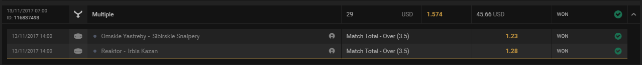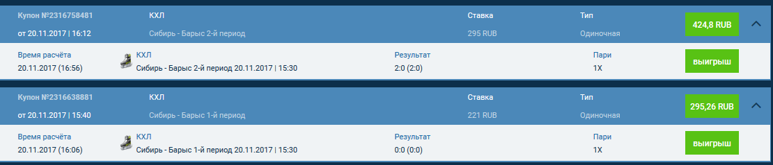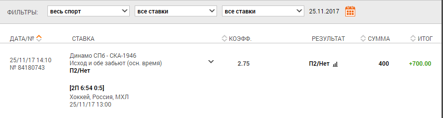 Вчера просматривал пару матчей К Х Л и не удержался от ставок в лайве.
