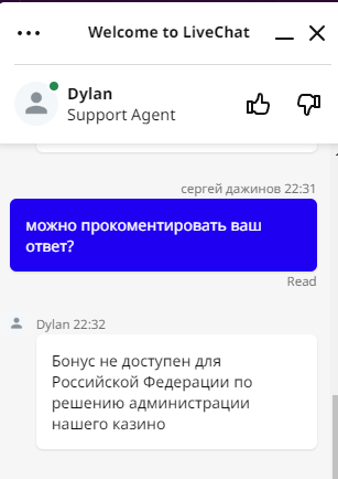 Знаешь прежде чем разместить пост ты должен убедиться что в правилах казино написано что для России этот бонус доступен и вот для таких я минусую просто ,не в обиду это для всех .