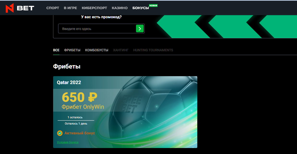 Пришло на почту казино n1 bet 650 руб фрибет на матч Катар- Эквадор.