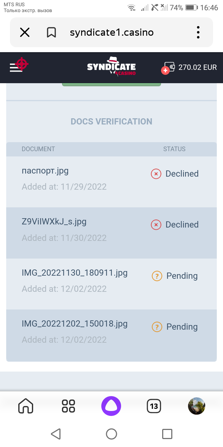 Не знаю стоит ли заморачиваться, вывод отменили, требуют депозит, у меня он в евро счёте, плюсом отклонили верификации, ссылаясь на то что в документе не видны рамки, хотя я с этим паспортом прошёл все верификации в десятках казино.