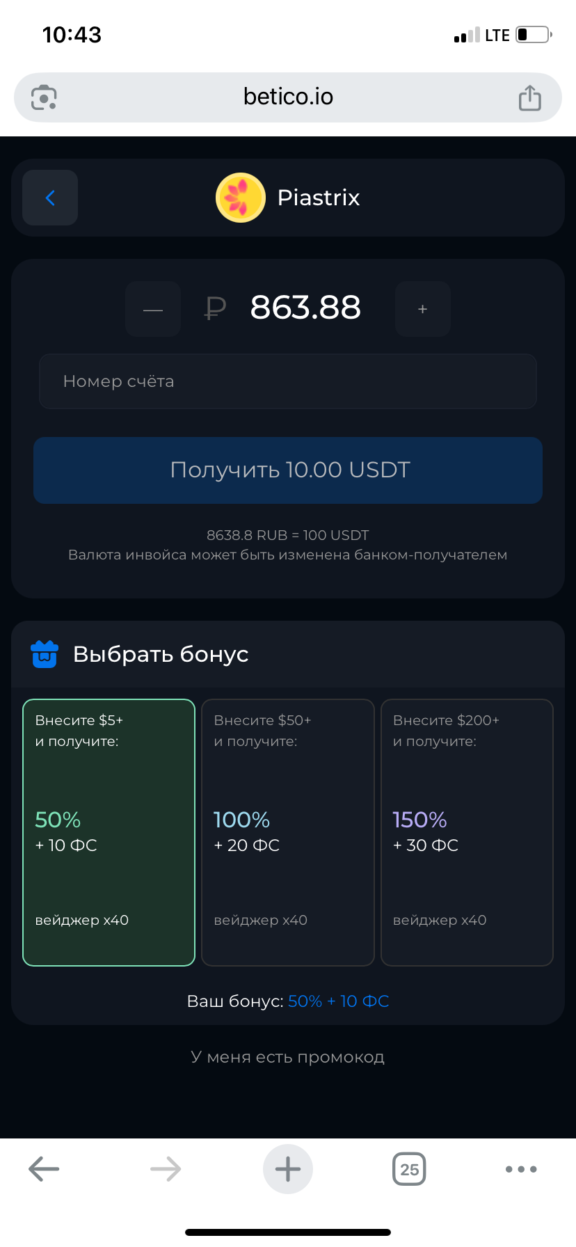 Отыграл в Бетико бонус8$ Если я внесу минималку с пиастрикса 870 руб я потом могу вывести все средства?![]()