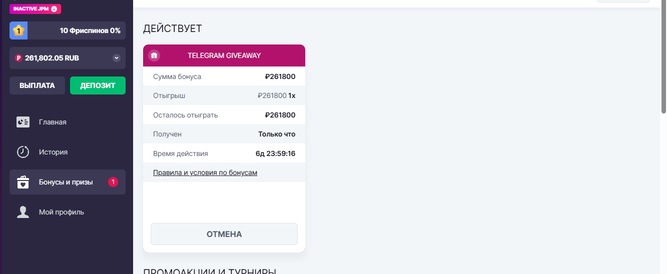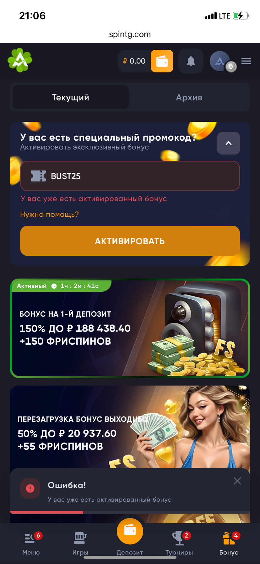 Пишет что у меня активный бонус как убрать хз ,чата поддержки нет.