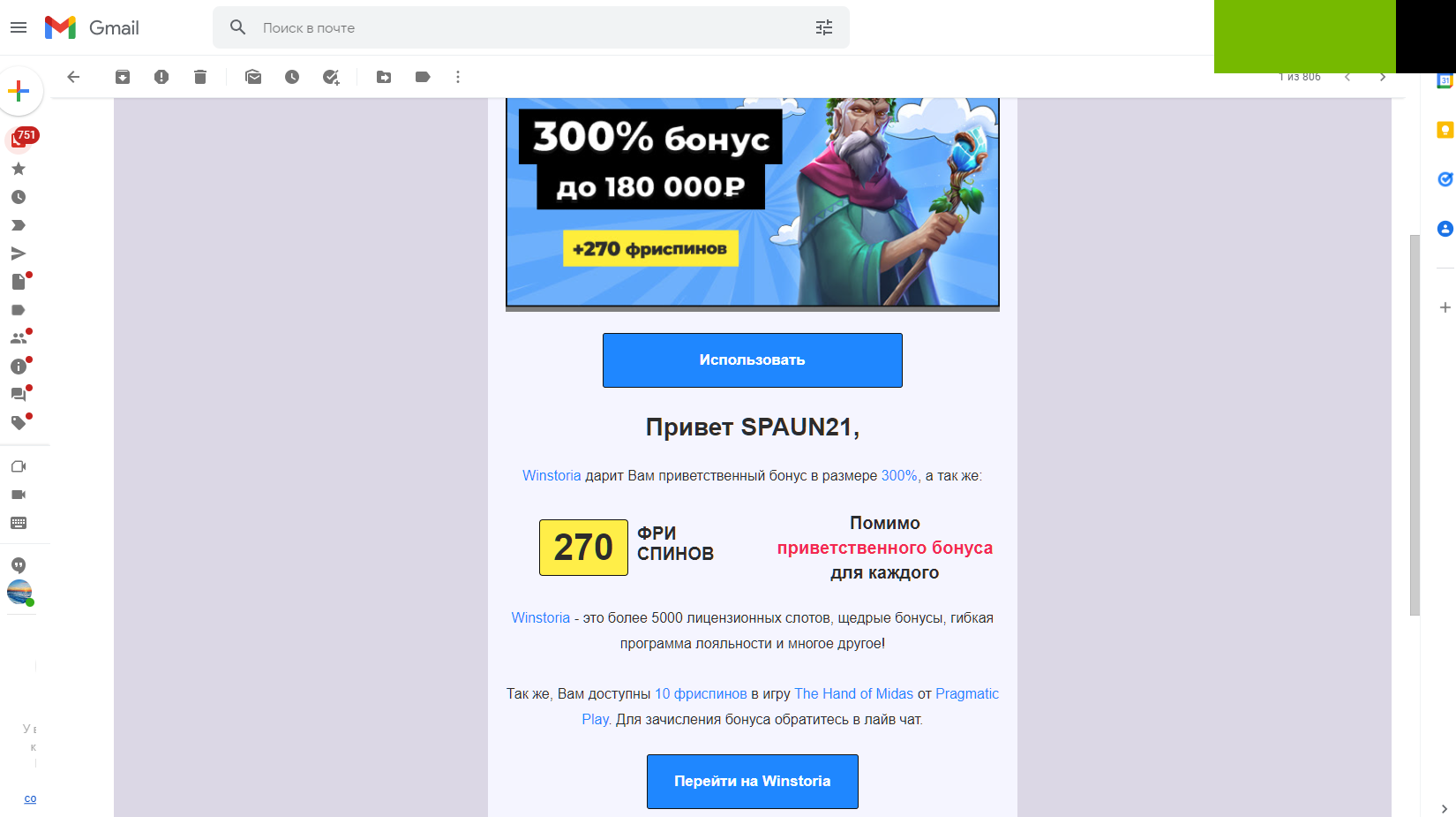 пришло на почту 10 фриспинов в Pragmatic Play . Вагер х60