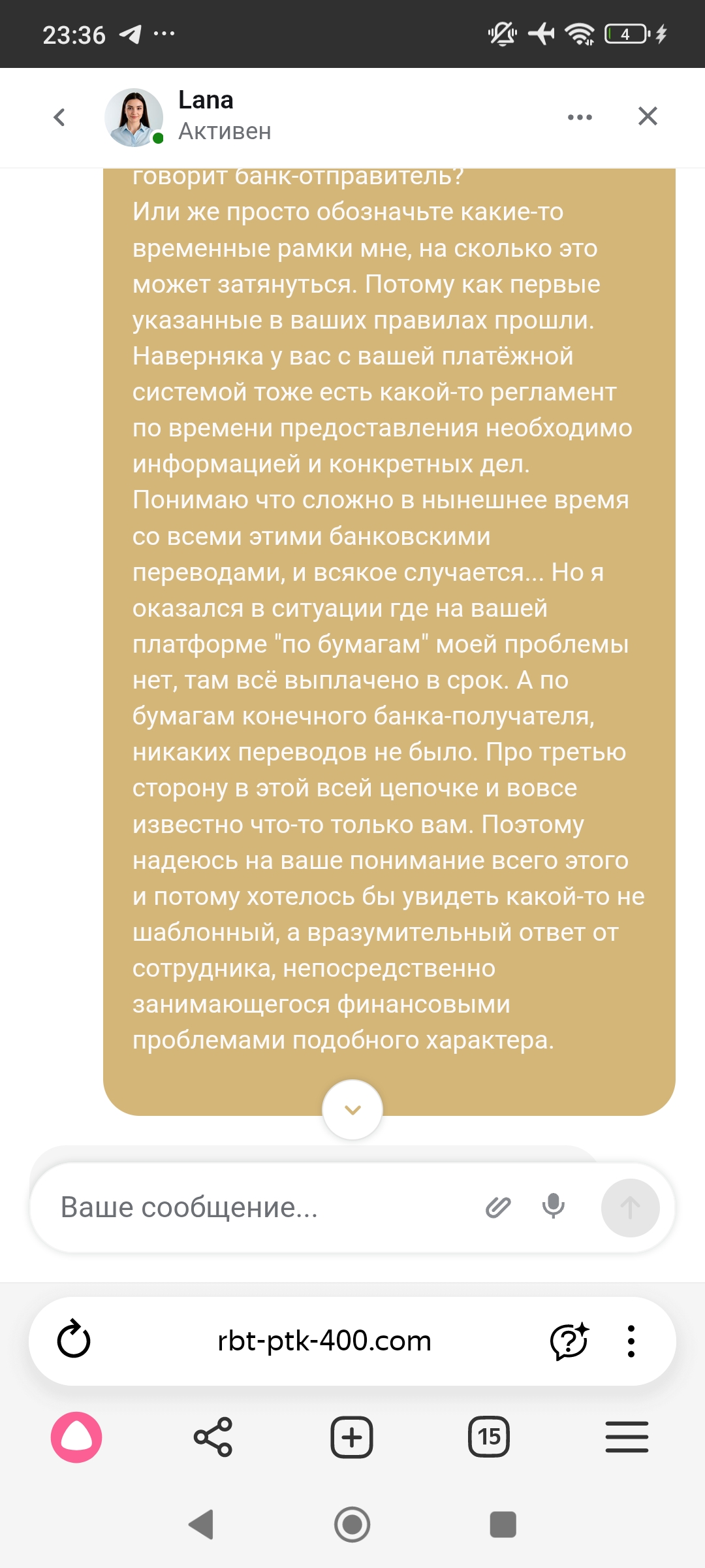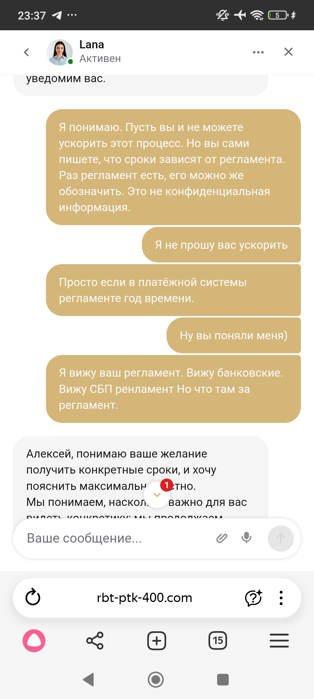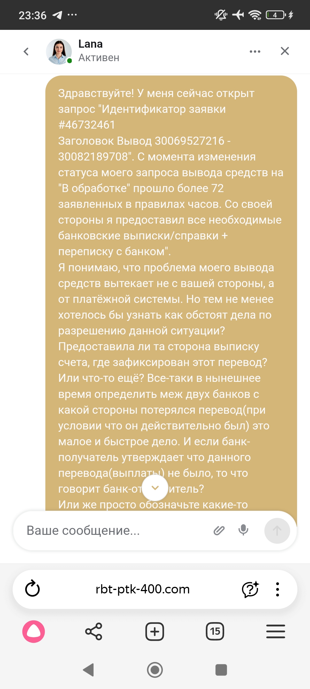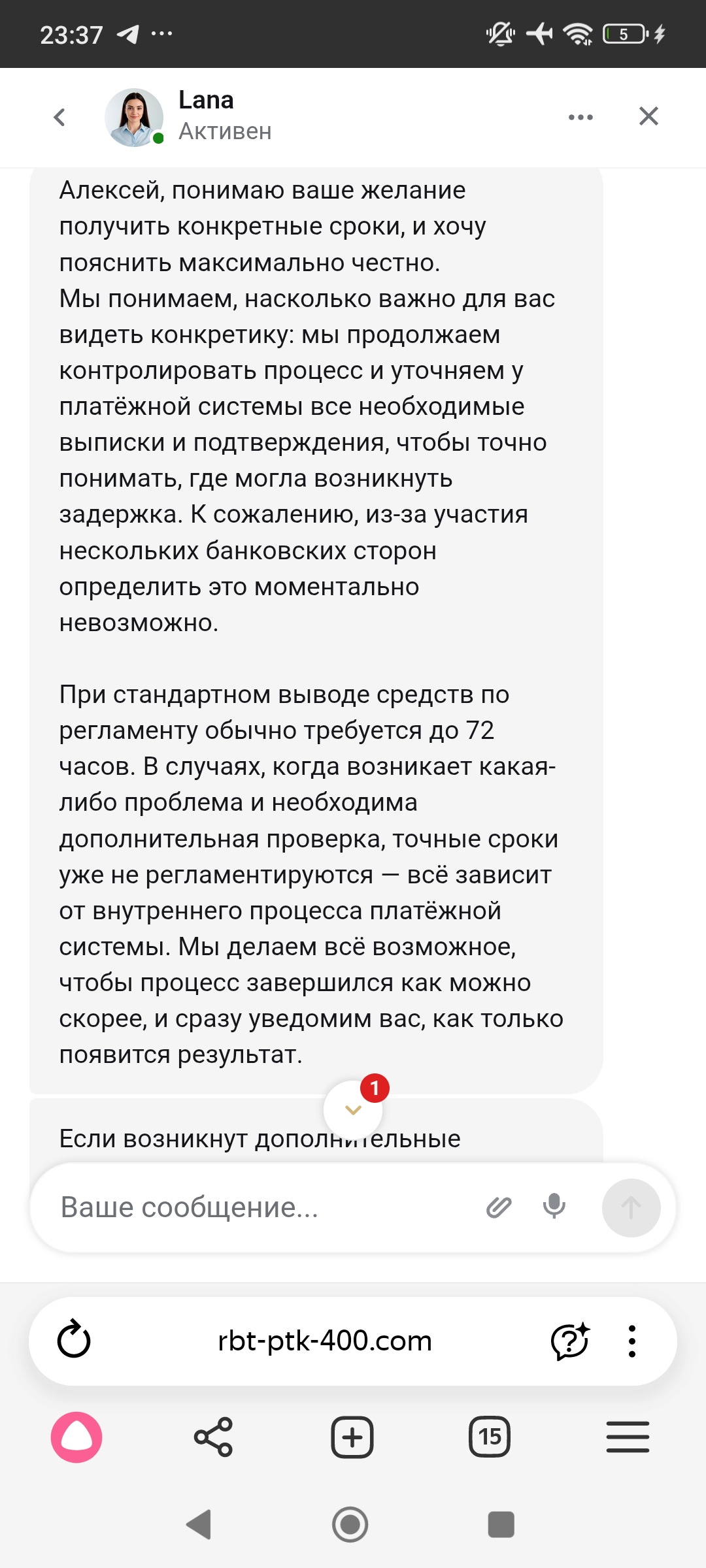 Осознав всё это, я полез всё в те же правила. И убедился, что я к ним вообще никак не отношусь) Выплата зафиксирована, на сайте отмечена, доказательства мне предоставлены. Про остальное нигде ничего нет. Есть только четвёртый день ожидания, что там скажет на это третья сторона. Та самая, таинственная «Платёжная система». С которой никаких контактов у меня как у клиента казино, конечно же нет и быть не может. Ровно как и каких то договоров и соглашений. Главное ведь это то, что казино УВЕРЕННО в том, что данные ребята справятся с своими обязанностями за 72 часа. Ну или хотя бы отчитаются) Поэтому и дальше прописывать какие либо условия смысла видимо казино не считает нужным. Но мы то понимаем, как устроена вся эта «платёжная система имени дропов» И вот тут уже не так оперативно получается. Что-то не спешит никто предоставить полную выписку со счета отправителя, с переписками банка. Хотя в наше время это минутное дело. Вообщем решил написать в поддержку после трёх дней ожиданий, что там в итоге и как узнать. Сколько ждать и получить внятный и чёткий ответ. Но конечно же откровенно понимая, что там беда и тёмный лес с этими дропами, и что мне шаблонно ответит какой-то случайный оператор чата, без какой то либо информации. Приложу последний скрины переписки. Единственное что я узнал, это то, что 1. у этой системы есть некий внутренний регламент, который мне, судя по всему уже как третьему лицу знать не положено. И 2. это то, что казино не может никак повлиять на этот внутренний регламент платёжной системы. Этот факт меня если честно поразил больше всего прочего. Хотя я думаю этот рядовой оператор даже не понимал что сам ответил мне. В ИТОГЕ казино что-то от кого-то ждёт, что-то там досконально разбирает, исследует, старается изо всех сил, от всей души хочет мне помочь, но к сожалению НИКАК НЕ МОЖЕТ ПОВЛИЯТЬ НА РЕГЛАМЕНТ, и более того, ОН НЕ МОЖЕТ ЕГО ПРОСТО МНЕ ОБОЗНАЧИТЬ. Как в тех самых пресловутых правилах. Видимо не так то это и просто)) В моём посте не мало иронии и подколов конечно. Я не наговариваю на Риобет в целом. Может завтра придёт мне моя выплата, может через неделю, а может и не придёт вовсе. Может вы добавите ещё пункты правил, для подобных ситуаций, может вы как-то сможете влиять на регламенты каких то третьих лиц, услугами которых вы же и пользуетесь. А может останется всё как есть.