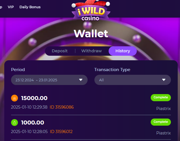 Iwild мне с новогодних спинов (те которые не работали и их меняли в чате, вывели 15к мне. Причем система сама списала до 15к, когда отмыл (на балике было 37)