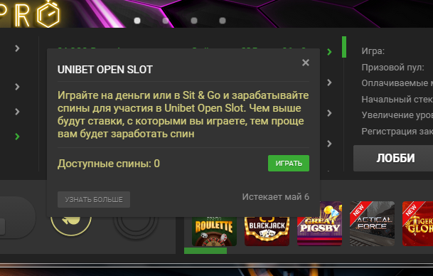 В покер клиенте Unibet есть 1 спин(проверяйте)