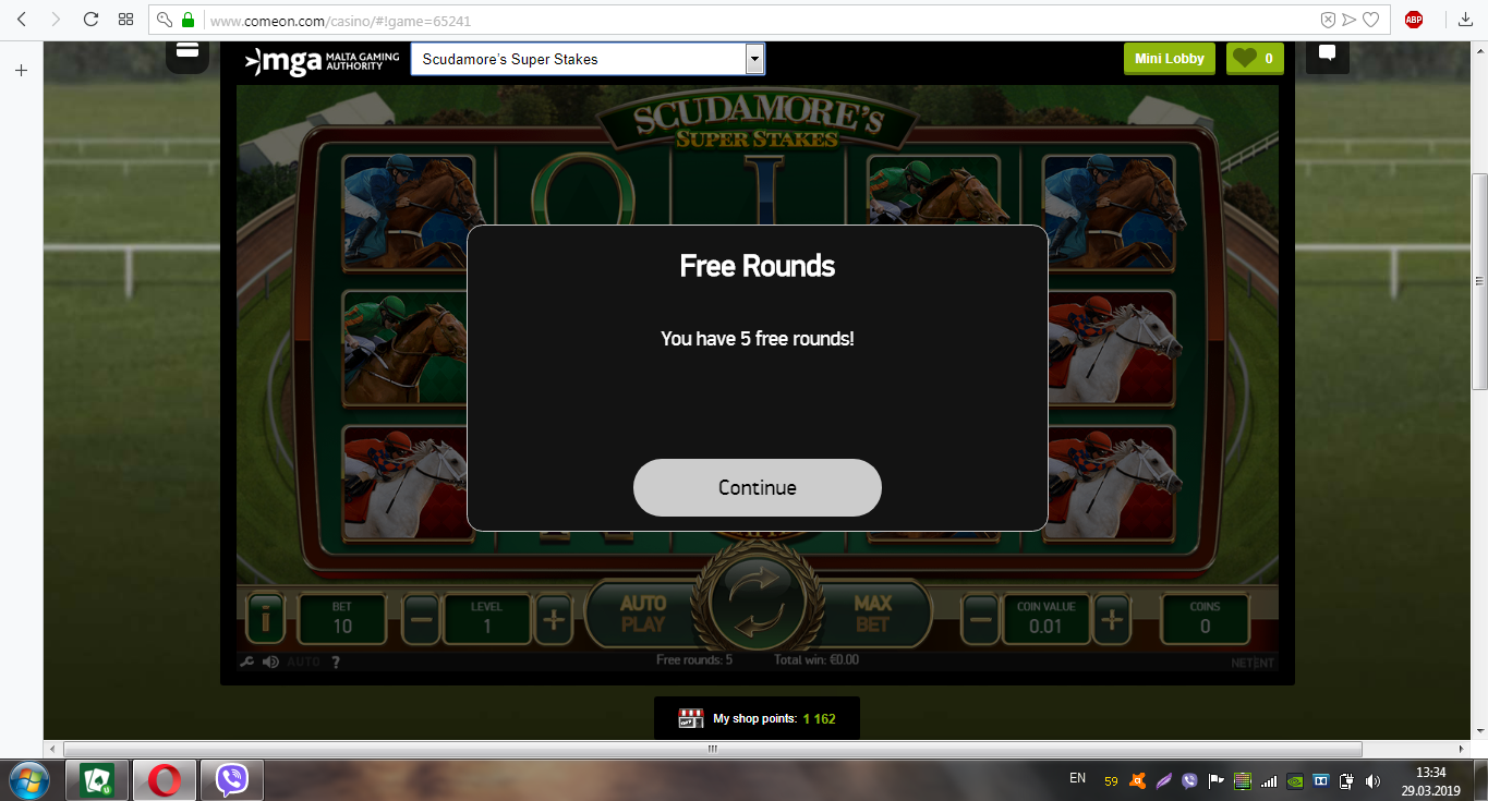 Казино Come on 5 фри спинов в слоте scudamores super stakes. В акциях выбираете Party Time