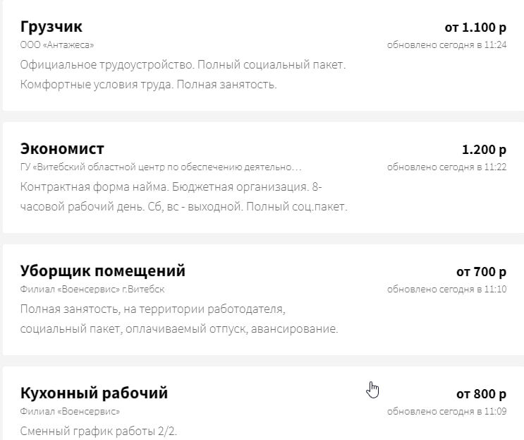 Таких зарплат в Витебске, к сожалению, нет. Люди получают если по 1300-1500byn то уже хорошо. А так у многих ЗП до сих пор 900-1200byn. 1000 баксов тут просто так никто в жизни не заплатит, нужно епашить тогда по 12 часов без выходных либо иметь какое-то образование, много опыта и тп.