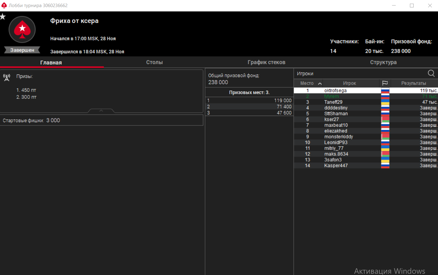 Турнир завершился 12.10.2020 16:31:44 MSK [12.10.2020 9:31:44 ВВ]