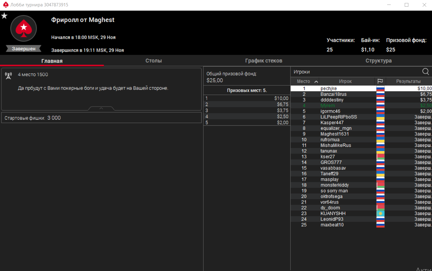 PokerStars Турнир №3025072018, Безлимитный Холдем