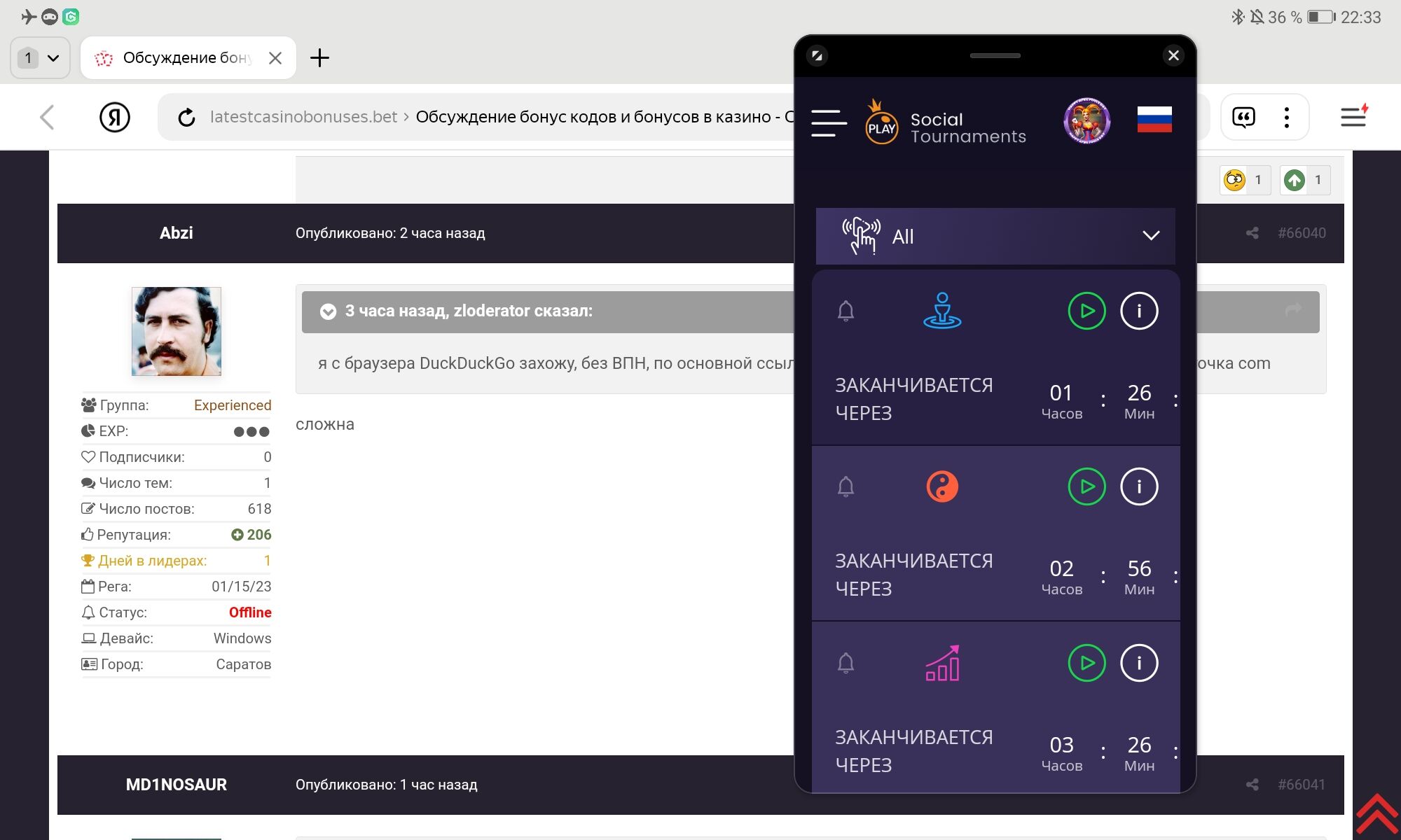я с браузера DuckDuckGo захожу, без В…, по основной ссылке, а потом переключает на ru2.socialtournaments точка com